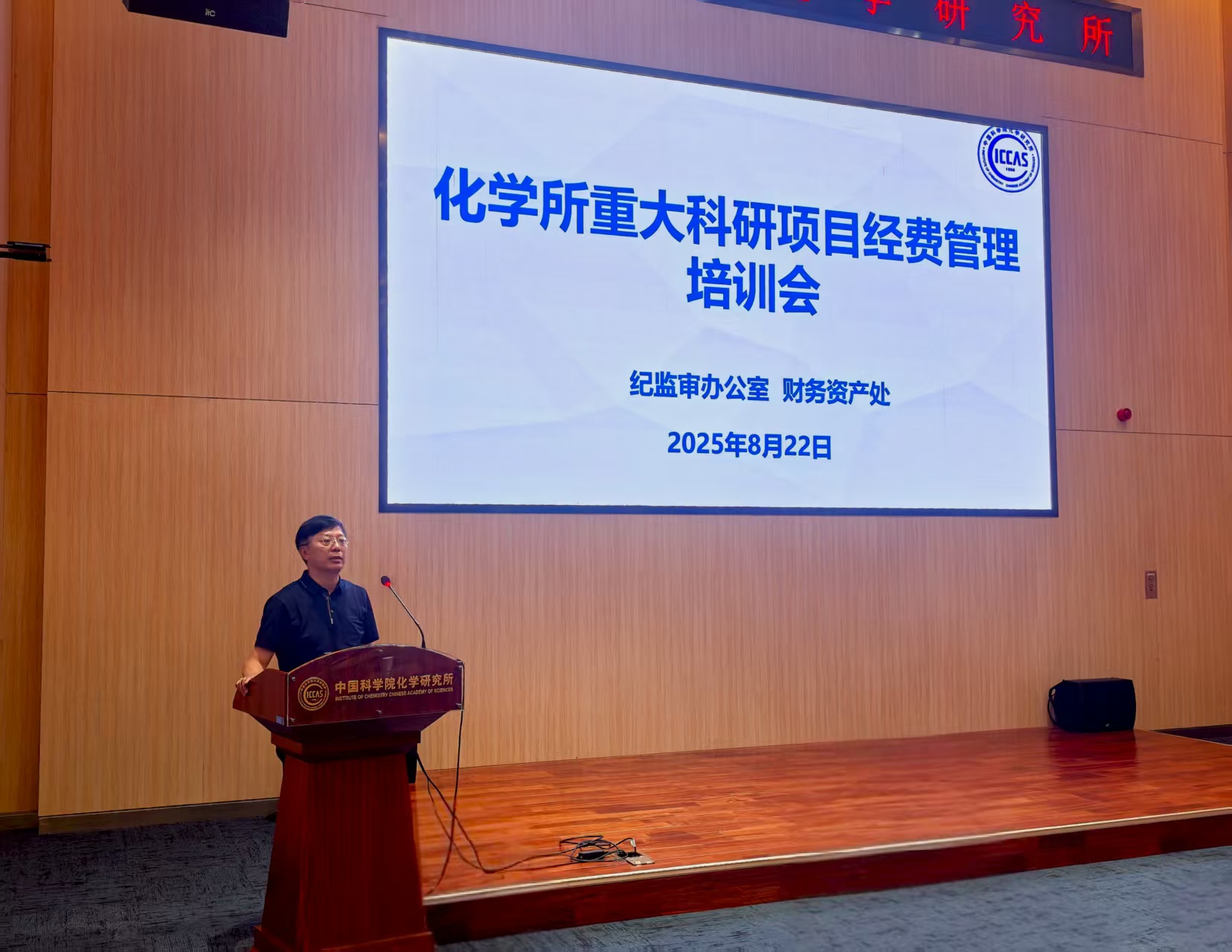为进一步规范重大科研项目经费使用和管理,提升经费使用效益,2025年8月22日下午财务资产处、纪监审办公室联合举办重大科研项目经费管理培训会。化学所所长王树、党委书记范青华出席,我所重大科研项目负责人及科研骨干、科研财务助理等百余人参加了培训会。会议由财务资产处罗可处长主持。